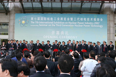“The 7th International Nuclear Power Industry Exposition” hosted by CAEA, was held in Shanghai at 9:00am, April 23, 2007. minister of COSTIND, Mr. Zhang Yunchuan, vice mayor of Shanghai Municipality, Hu Yanzhao, Vice minister of COSTIND and CAEA Chairman, Mr. Sun Qin, and the special assistant to the general manager of International Atomic Energy Agency, Graham Andrew attended and cut the ribbon at the opening ceremony.