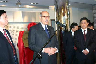 ( CAEA Net News), In the Afternoon of December 5,2006, Director General of IAEA, Dr. El Baradei was accompanied by Mr. Sun Qin, Chairman of CAEA and other relevant staff to visit the CIAE and attended the inauguration ceremony for the CAEA-IAEA Joint Training Center on Nuclear Safeguards and Security.