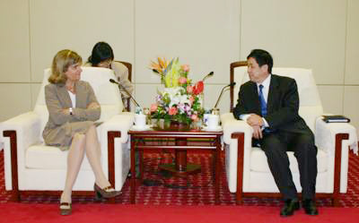 Madam Lauvergeon introduced the latest situation of AREVA’s participation in 3rd generation technology bidding and indicated the firmly and strong support of French government to the AREVA’s effort . In comparison with its competitors, AREVA put forward a solution with lower risk and less cost and more preferential condition of technology transfer. He said that France treasured the bilateral relationship between two nuclear industries built in the more than 20 years and would like to expand the current cooperation to much wider areas including nuclear fuel cycles. (Article/photo by Gu Xinping)