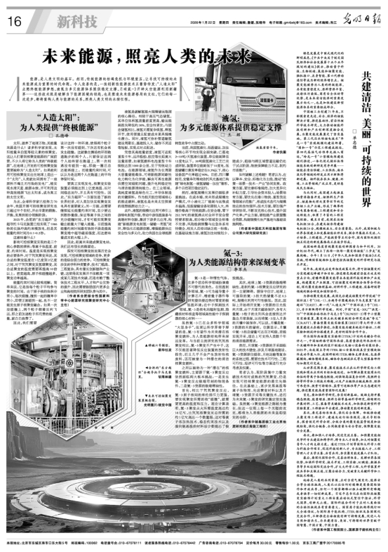 绿色发展是中国式现代化的鲜明底色。《中共中央关于制定国民经济和社会发展第十五个五年规划的建议》提出,推动量子科技、生物制造、氢能和核聚变能、脑机接口、具身智能、第六代移动通信等成为新的经济增长点。核聚变能被誉为人类的终极能源,具有能量密度大、原料资源丰富、放射性污染低、固有安全性好等优势,是未来清洁能源的重要发展方向之一,也是加快建设新型能源体系的重要组成部分。