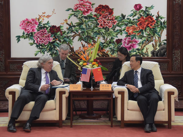 3月17日,国家原子能机构主任许达哲在京会见美国能源部部长莫尼兹,双方就核安全峰会筹备、核安保示范中心后续安排、核安保以及核能合作等事宜交换了意见。国家原子能机构副主任王毅韧参加会见。